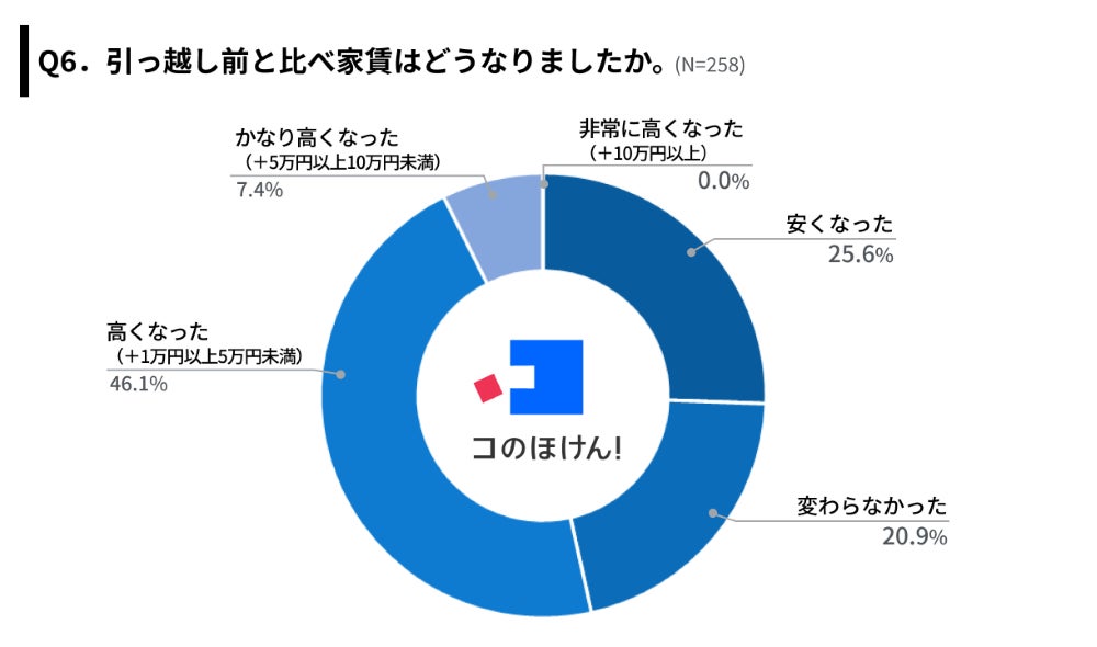 Q6.引っ越し前と比べ家賃はどうなりましたか。(N=258)