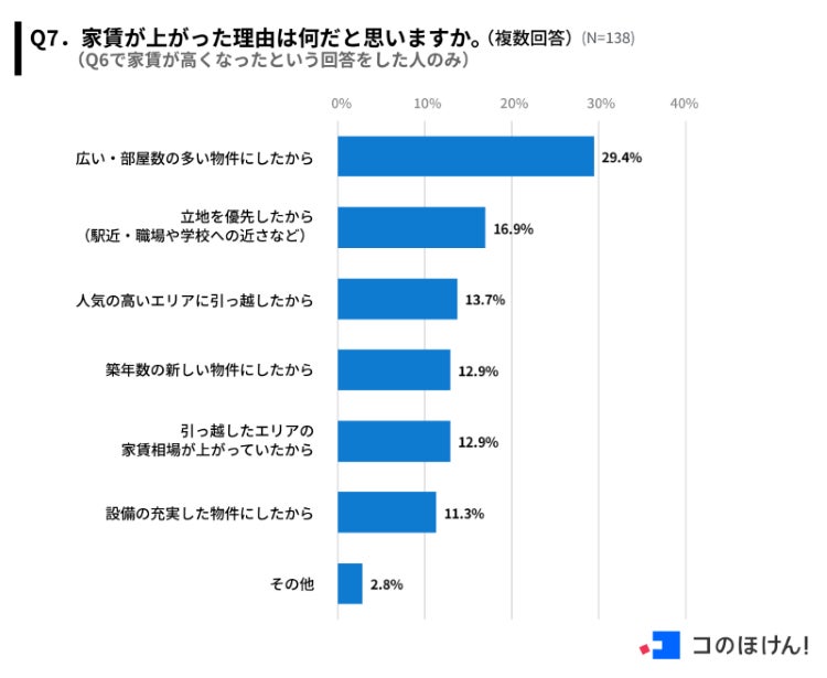 ■ 家賃が上がった理由、「広い・部屋数の多い物件にしたから」が最多に