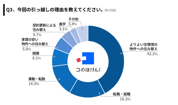 「よりよい住環境への物件の住み替え」が最多の42.2%、次いで「転職・就職」が16.3%、「異動・転勤」が14.3%という結果になりました。