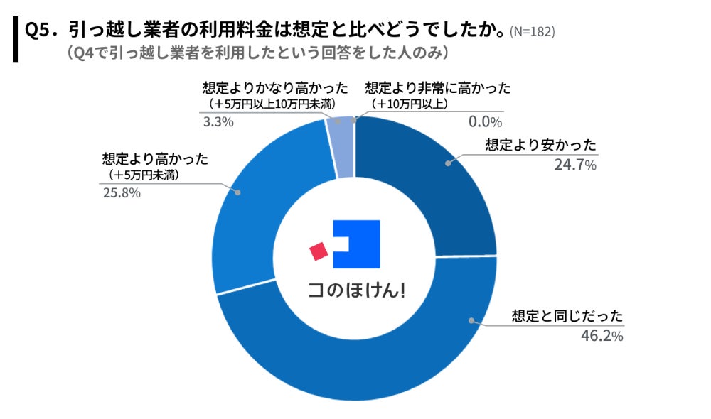 Q5.引っ越し業者の利用料金は想定と比べどうでしたか。(※引っ越し業者を利用したと回答した人のみ)(N=182)