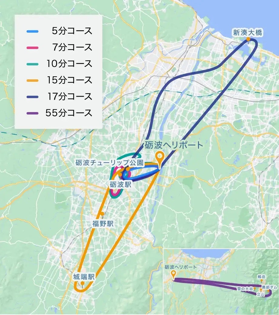 砺波周遊コース | 10分 | ¥25,000 | ¥70,000 |