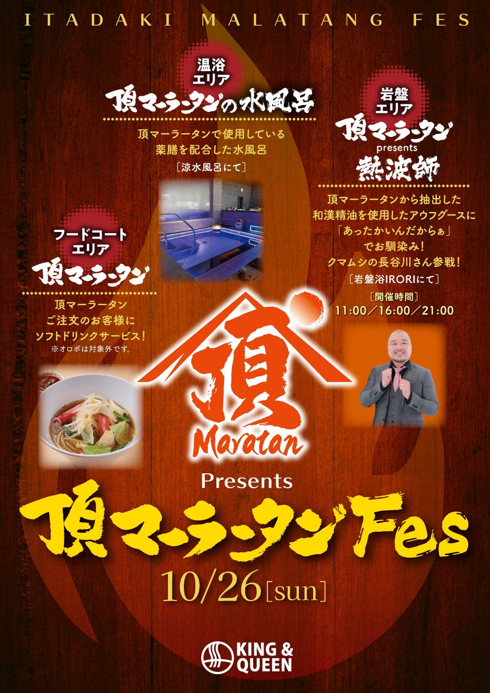 岩盤浴エリア、温浴エリア、食堂エリアで「頂マーラータン」を堪能できるイベントを10月26日(日)に開催します。