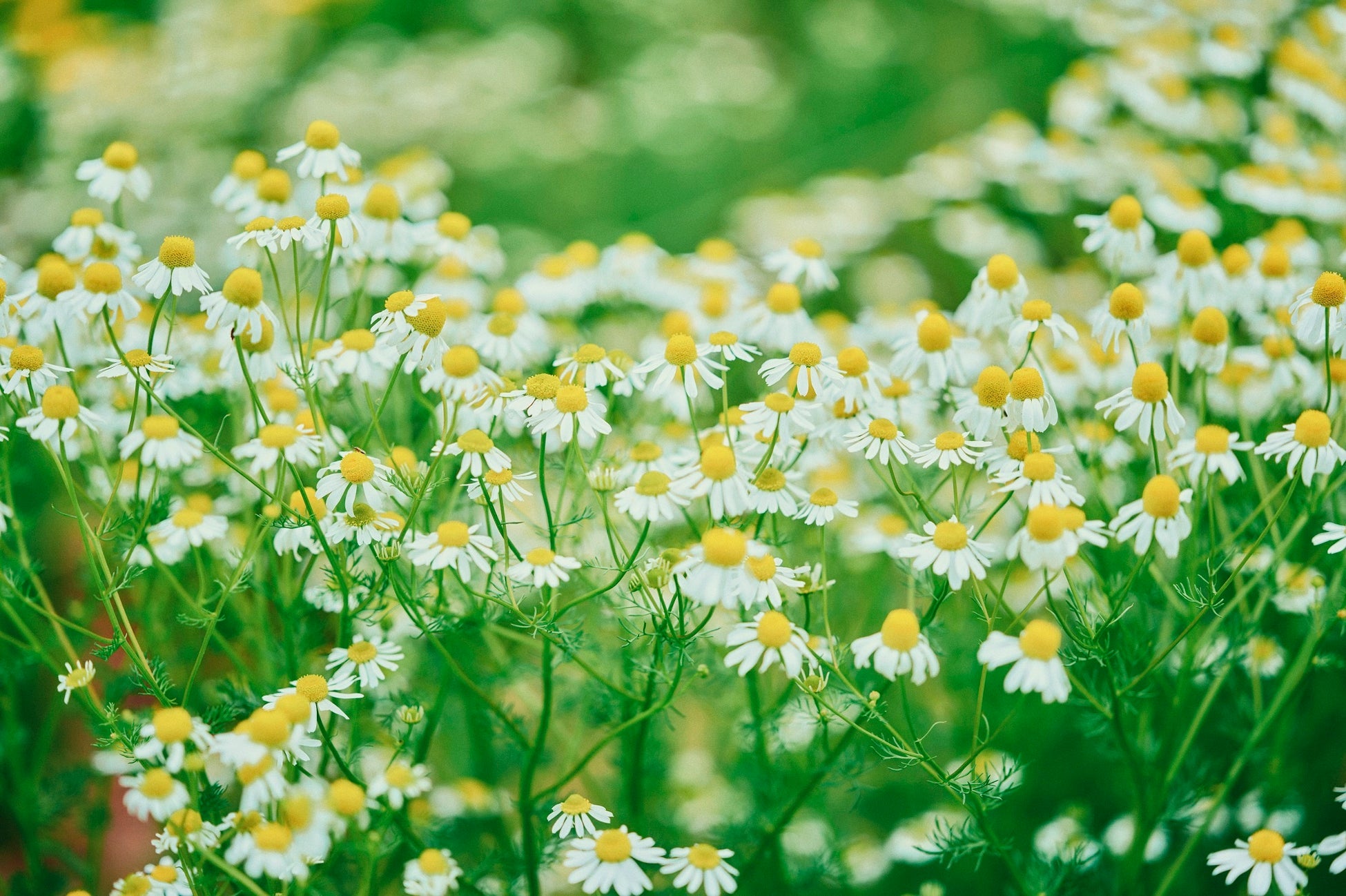 可愛いカモミールは、「風の丘フラワー園」「四季の庭」ふたつのガーデンでお楽しみいただけます