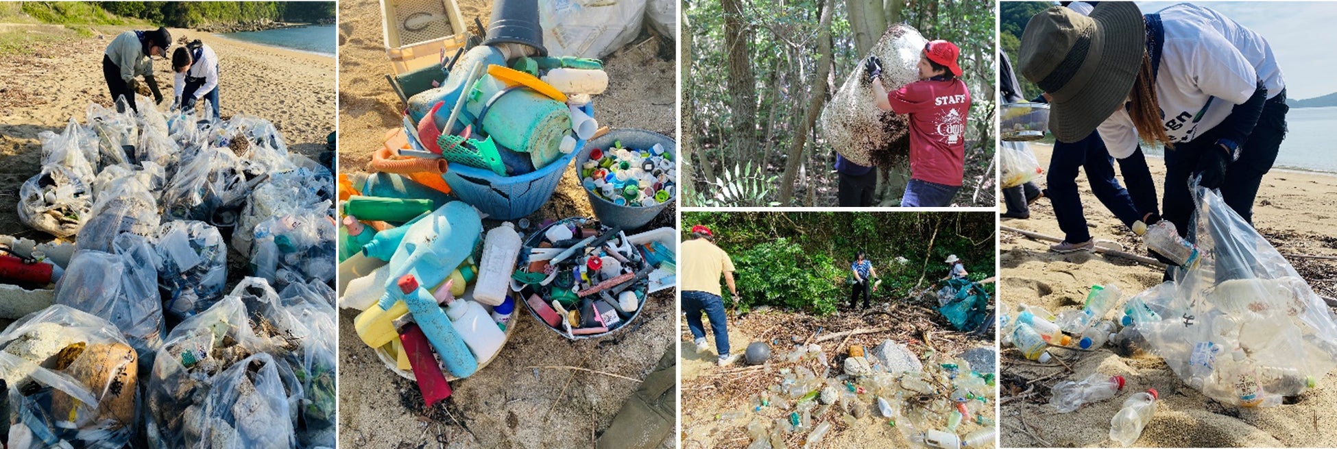 今回はさらに活動の輪が広がり、三豊市、香川県などで公民連携事業を行う穴吹エンタープライズ株式会社(以下 穴吹エンタープライズ)と、海洋プラスチックを「新しい形の資源」として捉え事業を展開する株式会社REMARE(以下REMARE)も加えた、計6社での活動となりました。その結果、約3000本のペットボトルを含む約1トンのプラスチックを中心とした海洋ごみを回収することが出来ました。