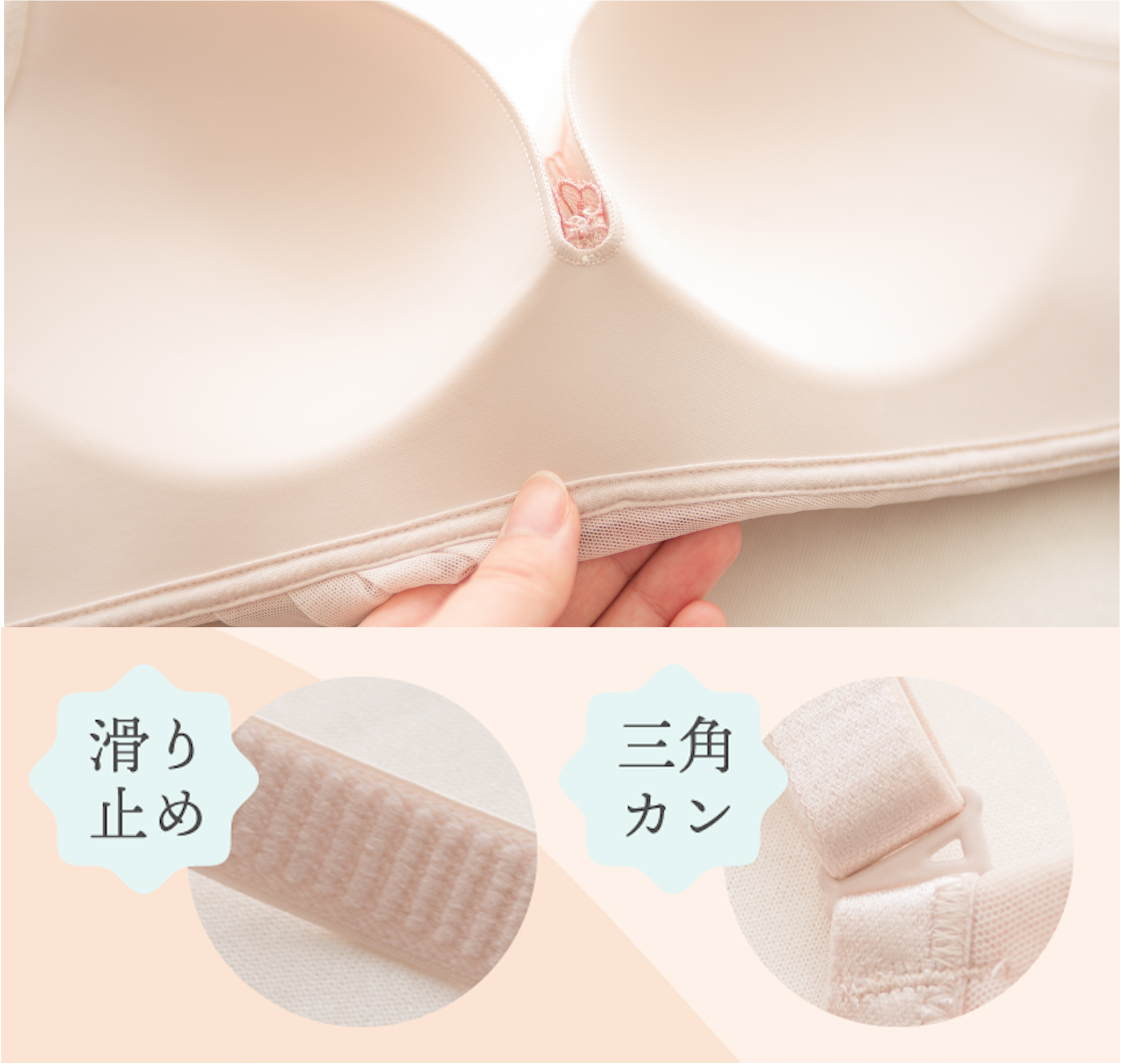 優しい着け心地でラクちんなのに、キレイなシルエットにしてくれるモールドカップブラ「はぐくむブラ」。着けるだけでキレイが叶うその特徴は、下記の6点となります。