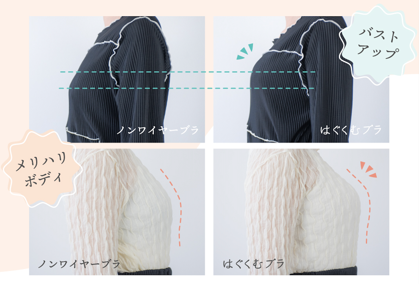 “ズボラさん”にピッタリ!?キレイになりたい、でも時間も手間もかけたくない方に。着けるだけでスッキリ&きれいが実現するモールドカップブラ「はぐくむブラ」が新登場。