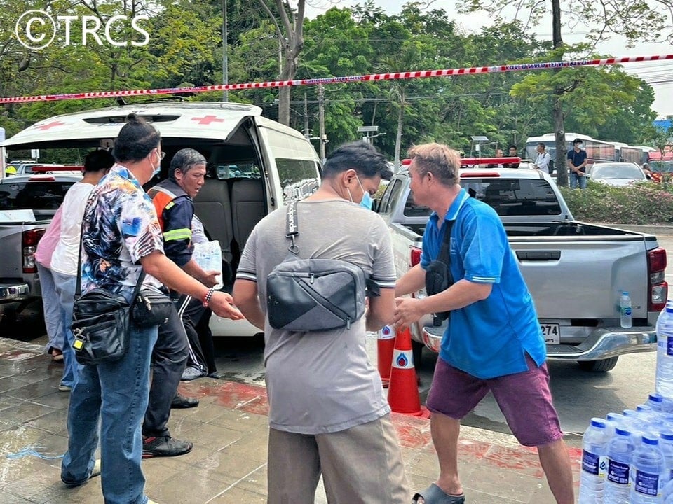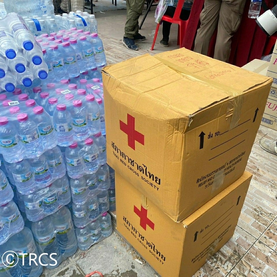 3月29日、タイ赤十字社は地震の影響を受けた地域で飲料水や衛生用品セットを配布するなど、緊急支援を実施しました。また、巡回診療チーム等を必要に応じて派遣できるようスタンバイさせるとともに、揺れを観測したタイ北部の支部を通じ、当該地域内での支援ニーズの調査を実施しています。