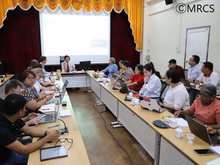 発災直後から、連盟およびICRCはミャンマー赤十字社、タイ赤十字社、中国紅十字会を含む各社からの情報収集・支援調整を実施しています。3月29日には、日赤を含む各社との情報共有会議を開催し、現地の状況や支援ニーズなどが伝えられました。