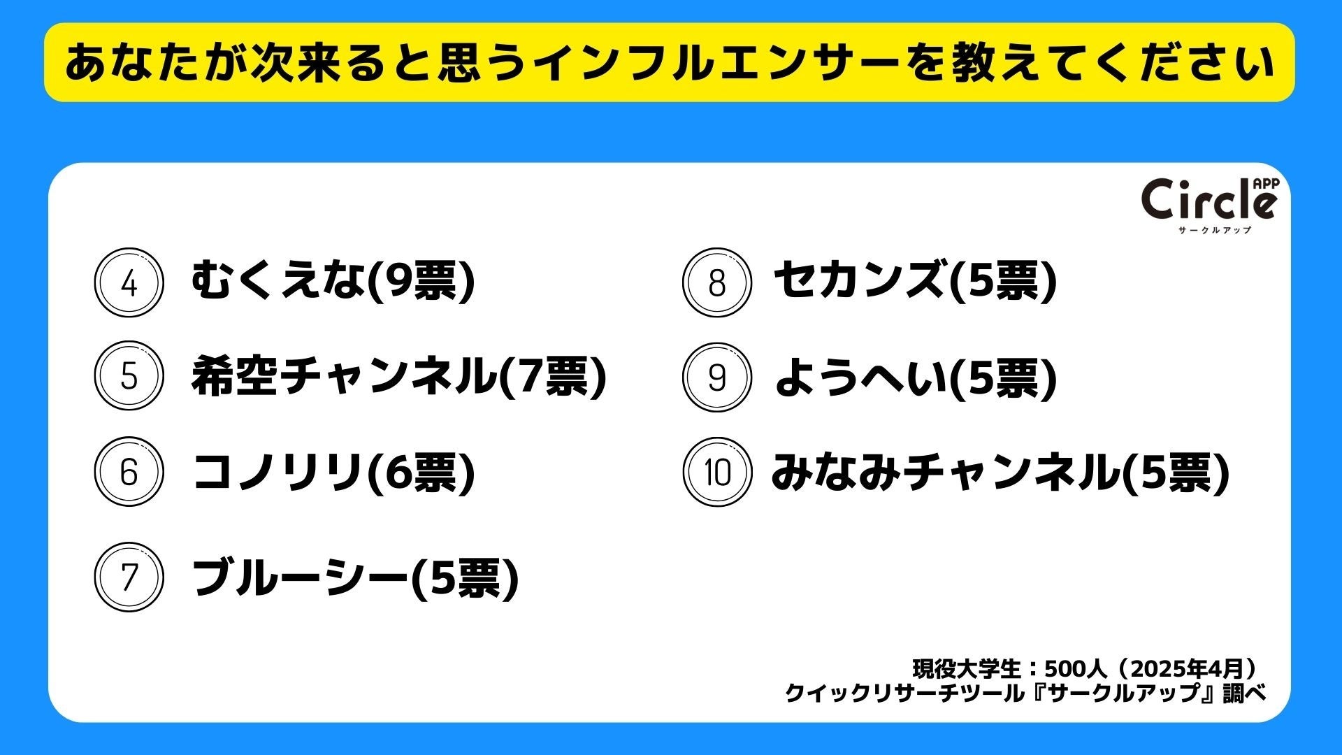 ■大学生500人に次に来ると思うインフルエンサーを聞いてみた
