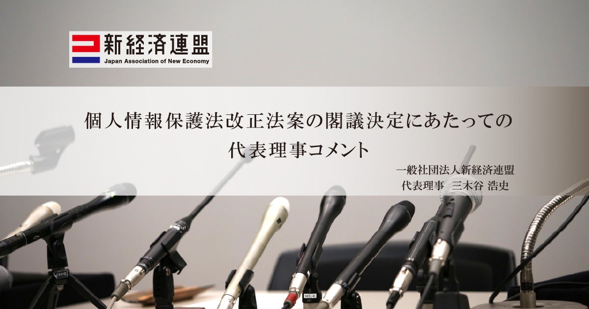 一般社団法人 新経済連盟(所在地:東京都港区、代表理事:三木谷 浩史、以下「新経連」)は、「個人情報保護法」改正案の4月7日付閣議決定を受けて、代表理事コメントを以下の通り発表します。