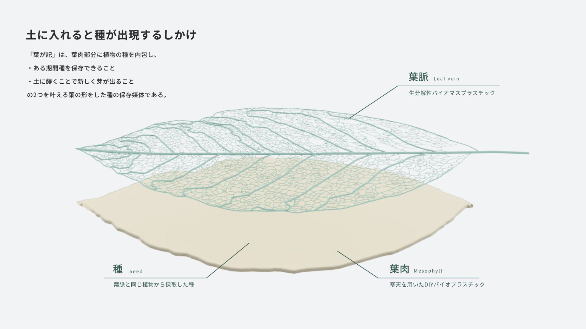 本物の葉っぱにそっくりな種子入りの人工葉「葉が記」で、植物の美しさを現代・みらいに伝えたい