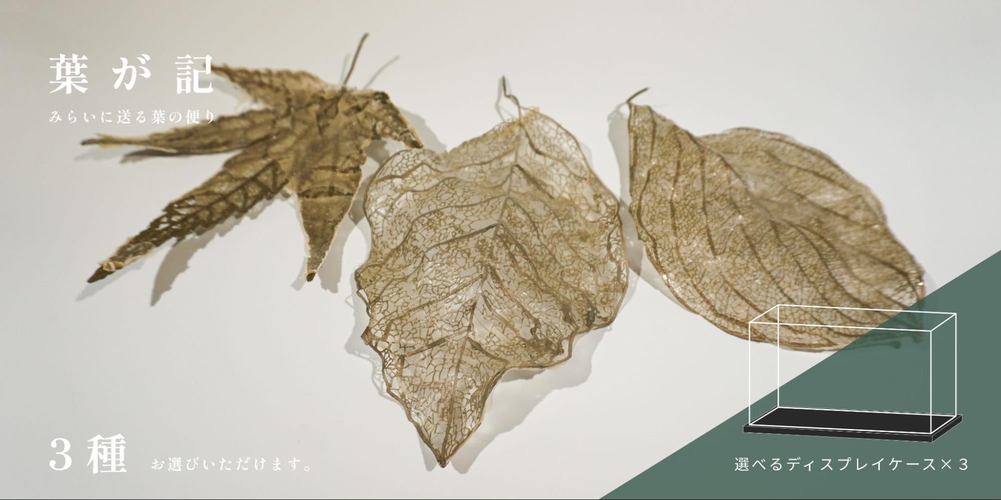 わたしたちは、この「葉が記」を、時を超えて葉の美しさと生態系を保存する”葉のタイムカプセル”として、みらいに向けて送る、葉の便りにしたいと考えています。葉が記を多くの人に届け、自然の美しさを強く記憶に残す。そして、みなさんのご家庭に、鑑賞用のオブジェとして、あるいは土に還した状態で種を次につなげてもらう。