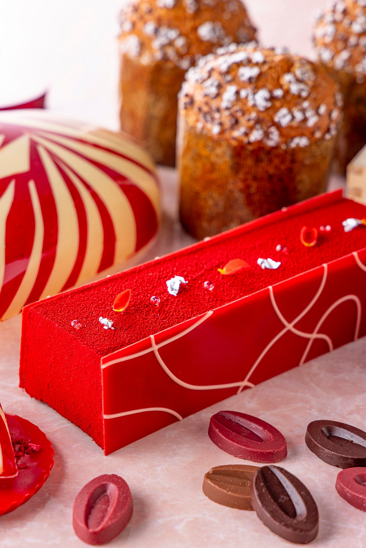 その他にもヴァローナ社のキャラメルチョコレートとココアをたっぷり練り込み、ヘーゼルナッツのグラサージュとカカオニブをトッピングした風味豊かな『パネトーネ・ショコラ』(¥540)、たっぷりのドライフルーツやナッツを散りばめたブラック、ホワイト、ルビー、ブロンドチョコレートでご用意する『マンディアン』(¥790)など、パティシエこだわりの限定のバレンタインアイテムを取り揃えています。贈る方に合わせ、ヒルトン東京のバレンタインアイテムで素敵なバレンタインデーをお過ごしください。