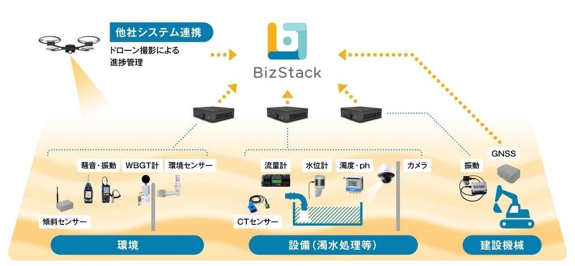 「BizStack」は、ヒト・モノ・環境のデータの収集・蓄積・活用により、企業の現場DXを加速させる、ソリューション型IoTプラットフォームです。ゲートウェイ・データ基盤・BI がオールインワンで備わり、すぐに使い始めることができます。