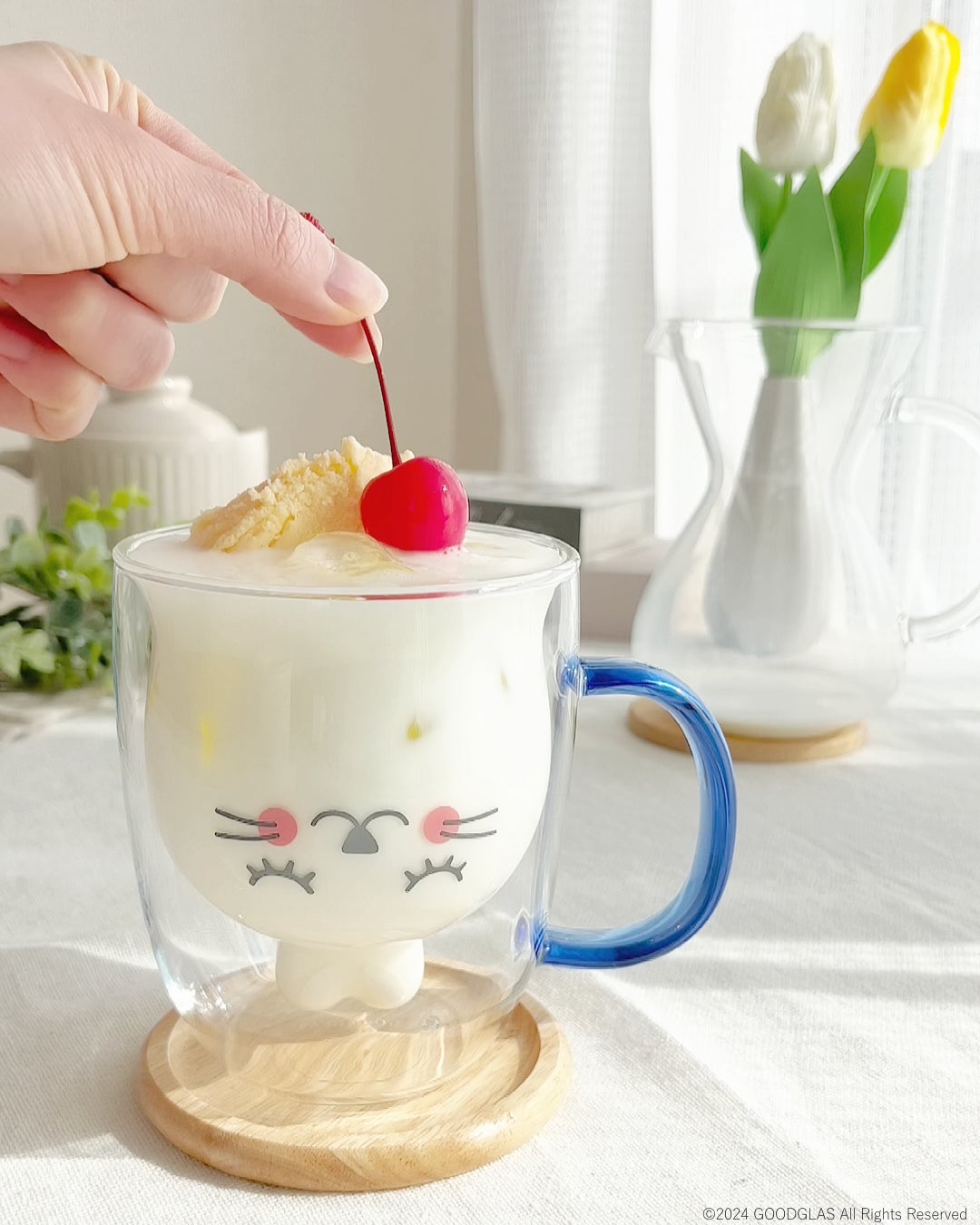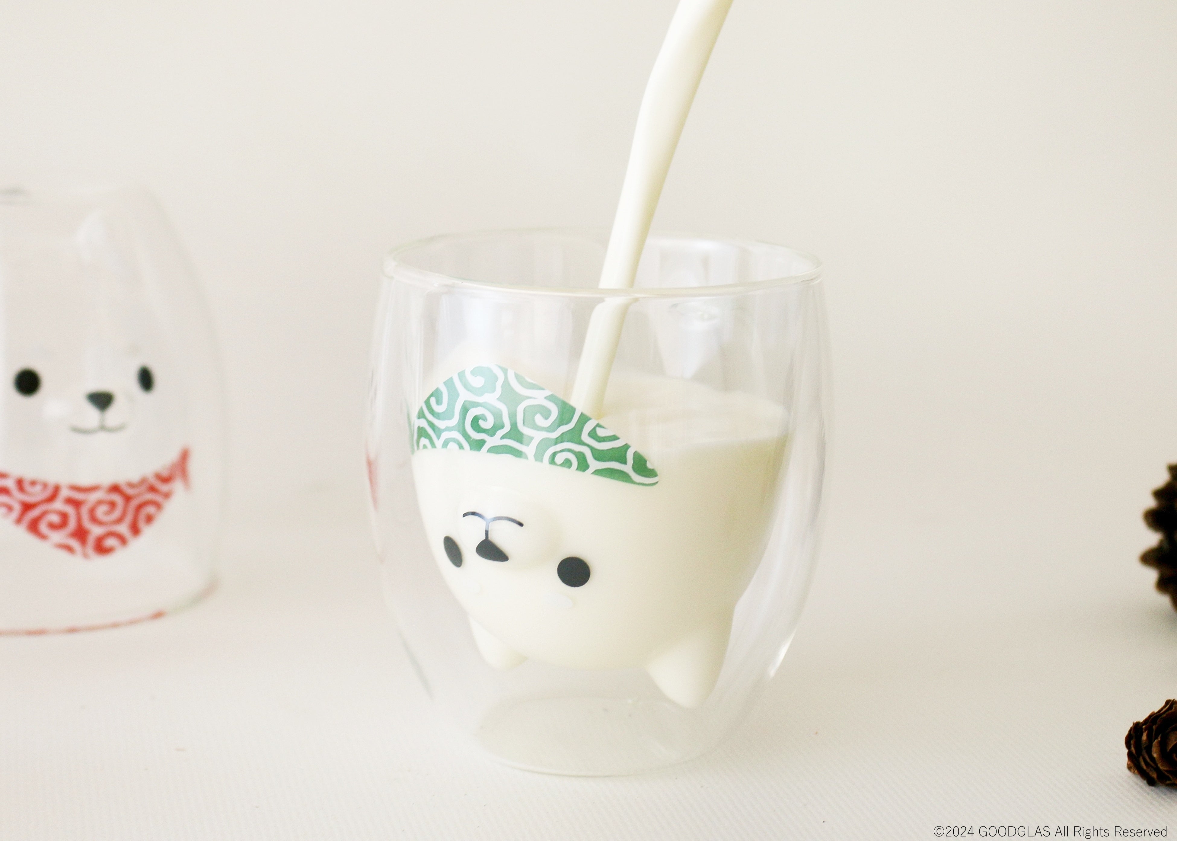 グッドグラスの二層構造グラスは、内側の層に動物やキャラクターがデザインされており、飲み物を注ぐとそのデザインがよりはっきりと浮かび上がる、なんとも可愛いグラスです。注ぐ飲み物によって雰囲気が変化するのも、楽しいポイントの一つです。