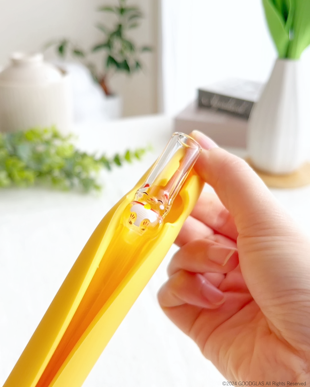 このマイストローは、単なるガラス製ストローではなく、ガラス職人の技術を駆使して本体にかわいらしいデザインを施しており、見るだけで心が弾むようなアイテムです。