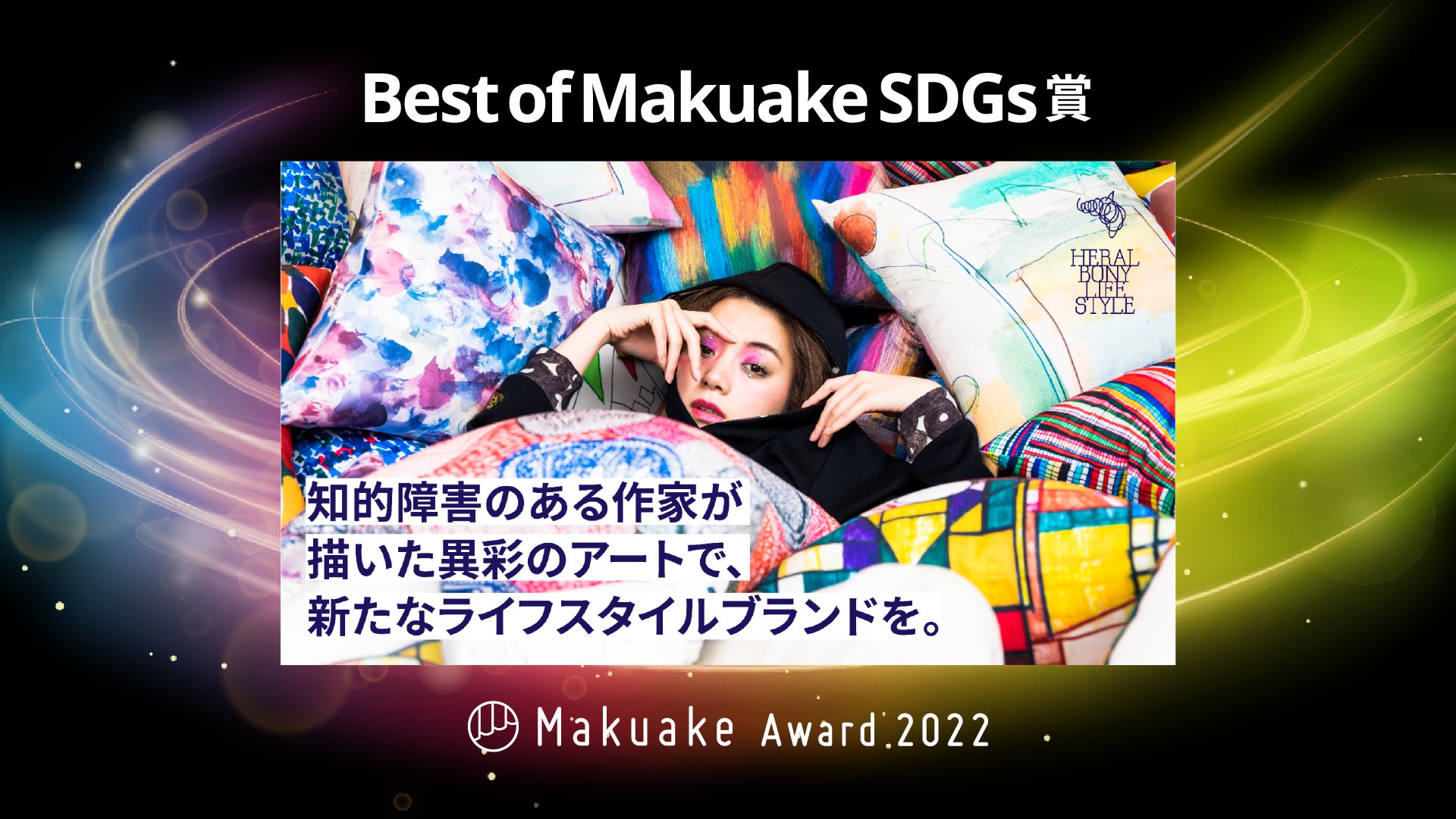SDGsの達成とサスティナブルな社会の実現に向けて「Makuake」を活用し、社会的にも影響をもたらしたプロジェクトを表彰する「Makuake SDGs賞」は、福祉実験ユニット・ヘラルボニーによるライフスタイルブランドを立ち上げるプロジェクト、2foodsとカゴメが共同開発したプラントベースオムライス、老舗桐箱メーカーの増田桐箱店による桐箱の端材を活用した木製オセロ「haco toy osero」の3つのプロジェクトを表彰しました。その中からBest Of Makuake SDGs賞には、福祉を起点とした新たな文化を創ることを目指し、知的障がいのあるアーティストとライセンス契約を結び、彼らが描くアート作品をライフスタイルブランドとして「Makuake」で立ち上げた株式会社ヘラルボニーが選ばれました。