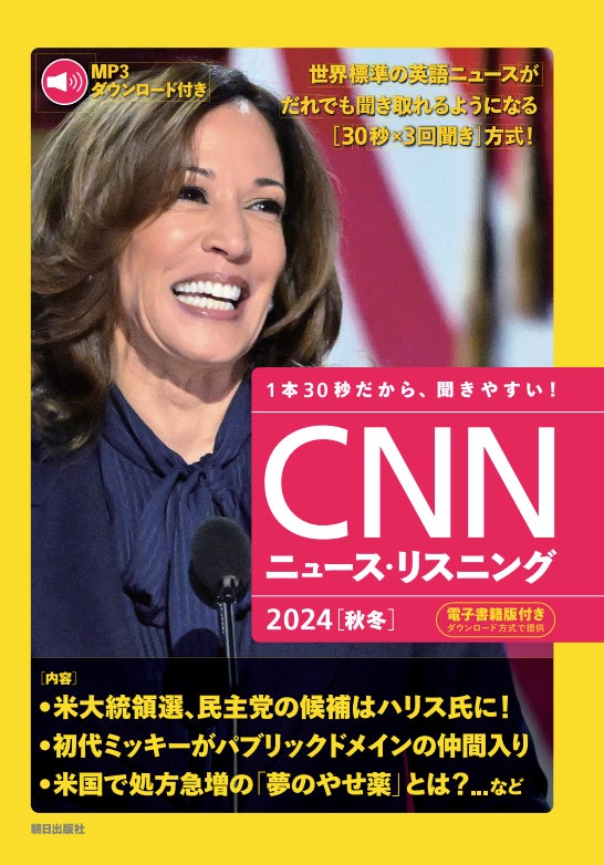 株式会社朝日出版社の人気シリーズ最新刊、『[MP3音声&電子書籍版付き] CNNニュース・リスニング 2024[秋冬]』を本日発売いたしました。全国の書店・ネット書店でお求めいただけます。