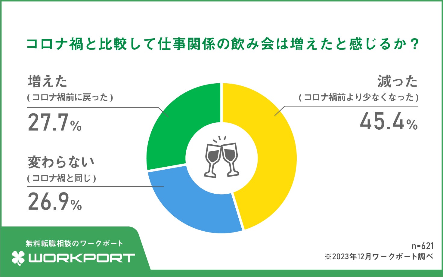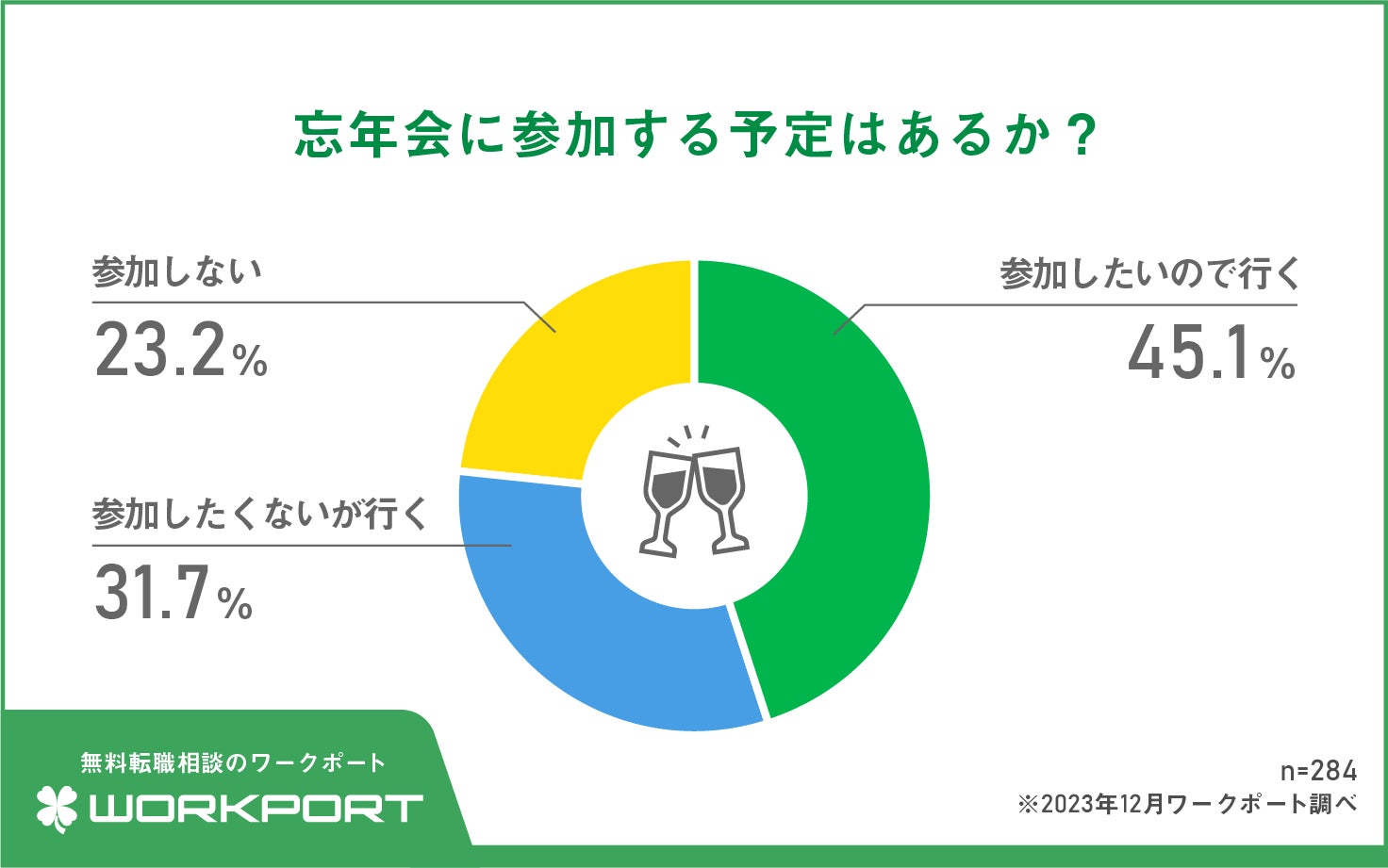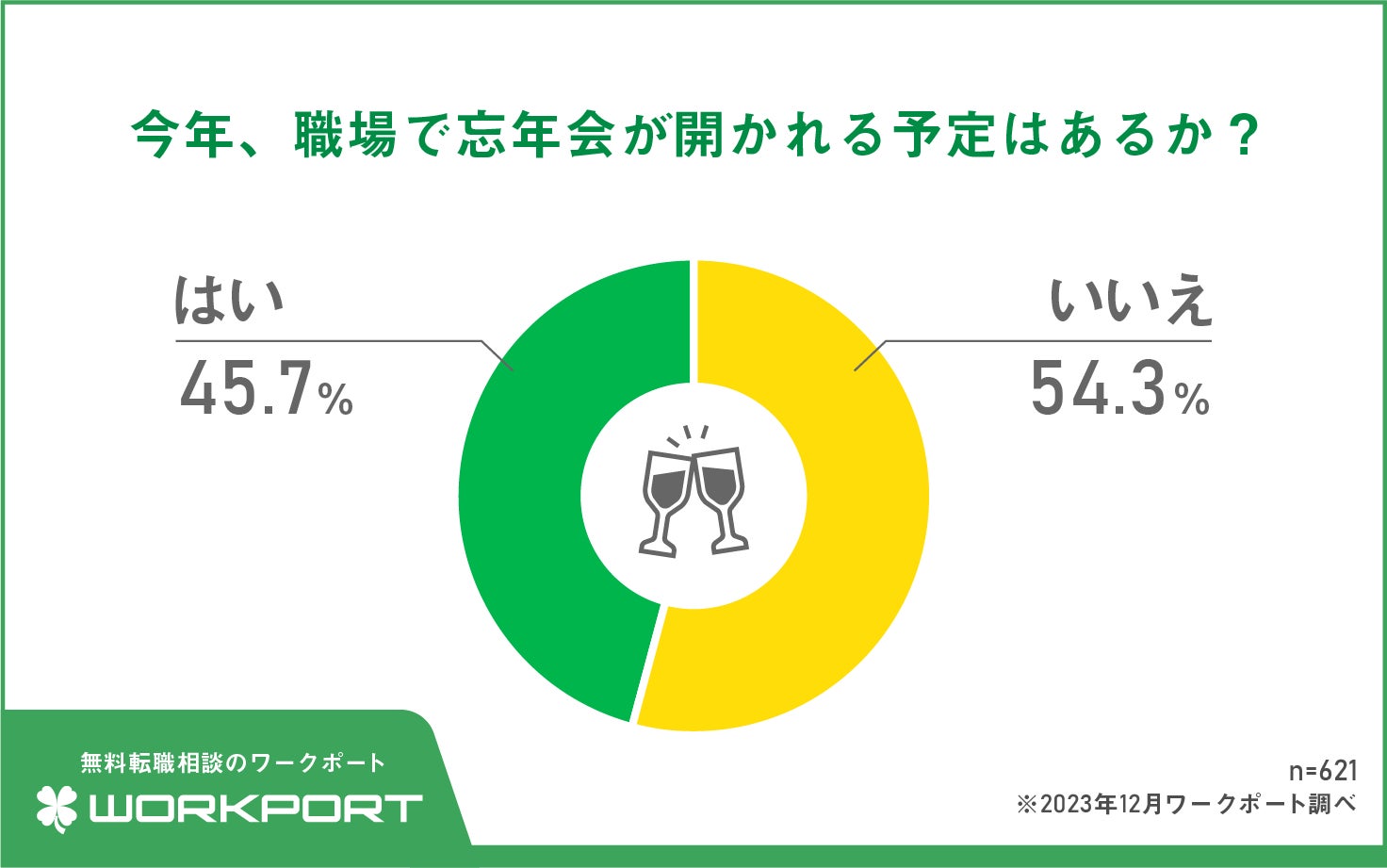 【忘年会の実施率】今年、職場の忘年会が「ある」45.7% コロナが明けても5割の職場は開催予定なし