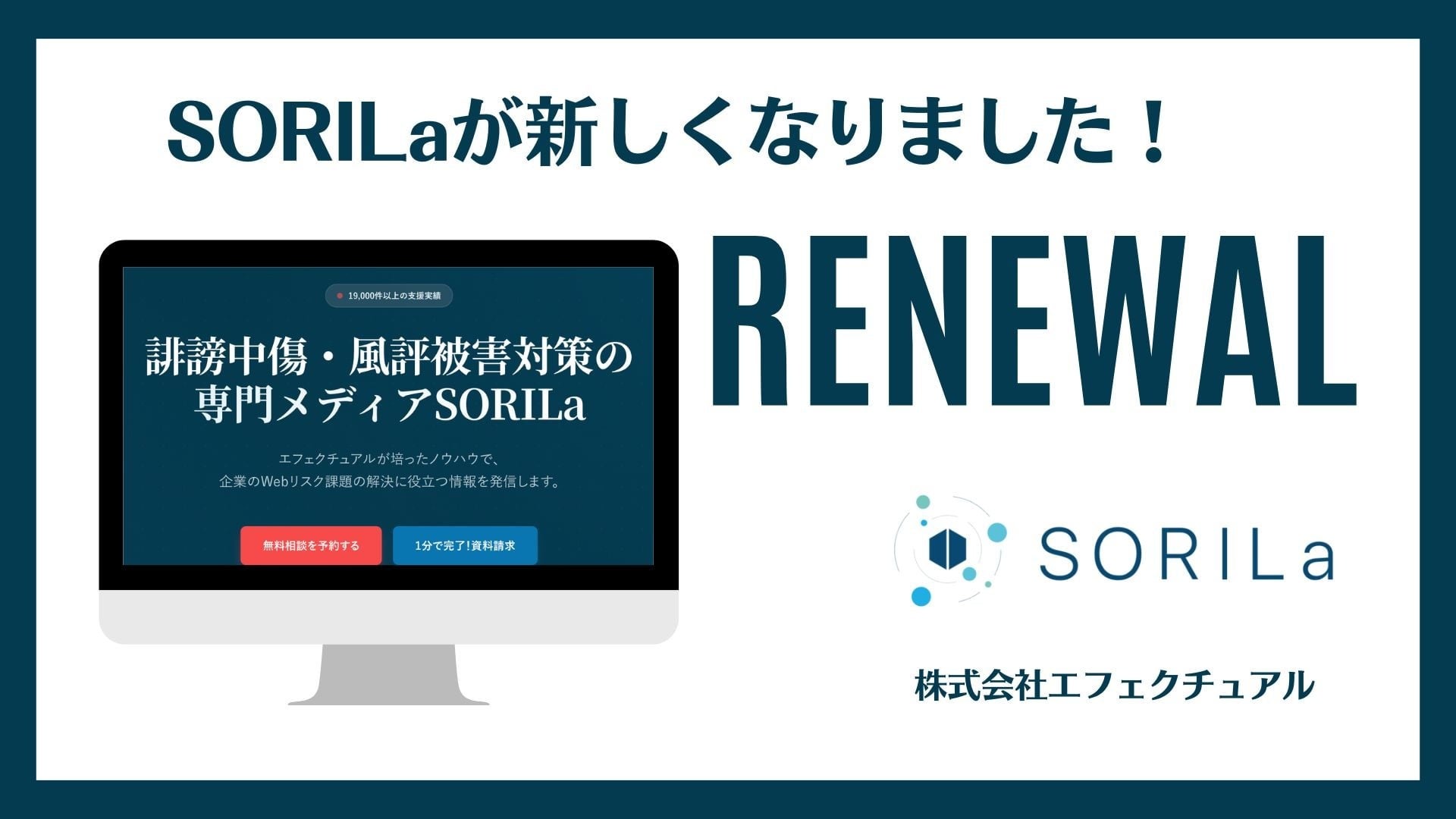 株式会社エフェクチュアル(本社:東京都港区、代表取締役:田中 倫明)が運営するWEBリスクマネジメント専門メディア「SORILa(ソリラ)」は、2026年3月、サイトの全面リニューアルを実施しました。2019年の開設以来、月間約2万人の企業広報・リスク担当者に参照されてきた同メディアは、生成AIによる情報氾濫が加速するなか、"専門家が責任を持って届ける確かな知識"の発信基盤として進化します。デザイン・表示速度・セキュリティの刷新に加え、「お役立ち資料」「導入事例」の2つの新セクションを設置。実務担当者が情報収集から意思決定・実践まで一気通貫で活用できるメディアへと生まれ変わります。