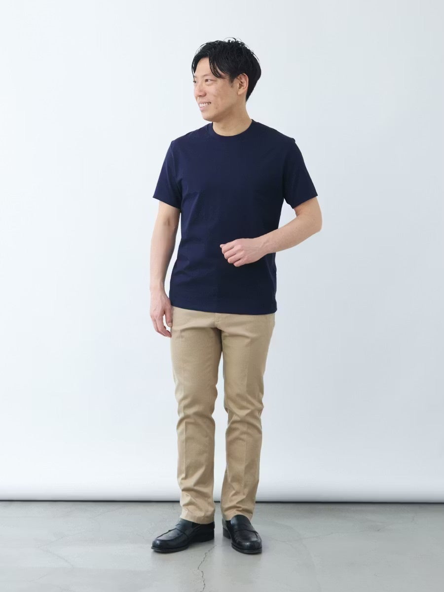 採用した「26ゲージ」は、ドレスとカジュアルの中間に位置する生地感で、ラフになりすぎずきれいめな印象も合わせ持っています。