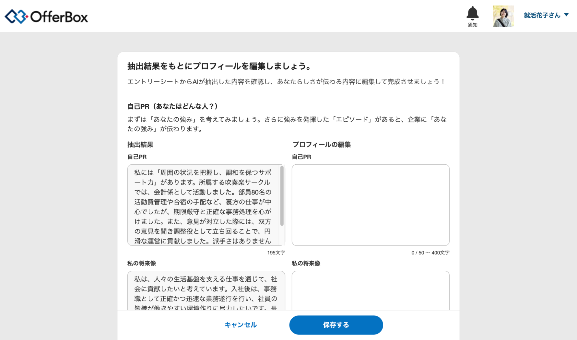 OfferBox、作成済みのエントリーシートからプロフィールをAIが提案する新機能「スマートプロフィール作成」をリリース