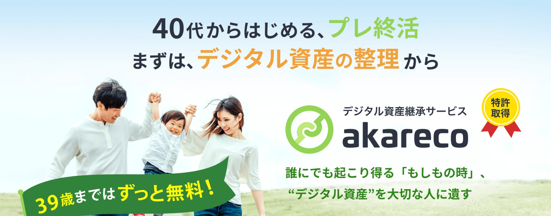 【39歳以下の料金を無料に】デジタル資産継承サービス 「akareco(アカレコ)」で資産管理・終活