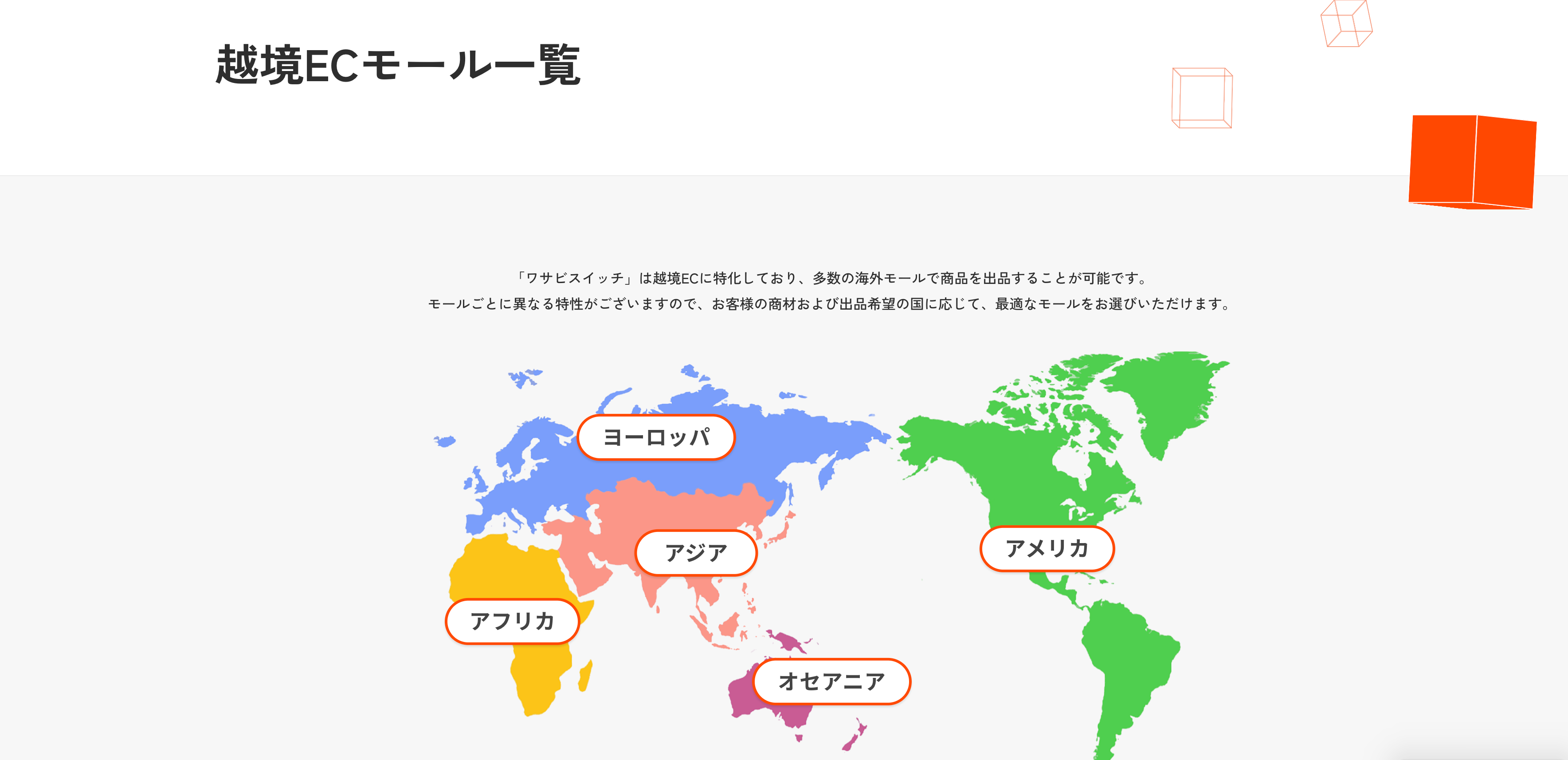 その中で「ワサビスイッチ」は、サービス開始当初より越境ECに特化した設計を行い、現在では、国内17モール、海外20モール(※1)といった広範なネットワークを構築。ワンストップで海外販売を実現するソリューションを展開しております。