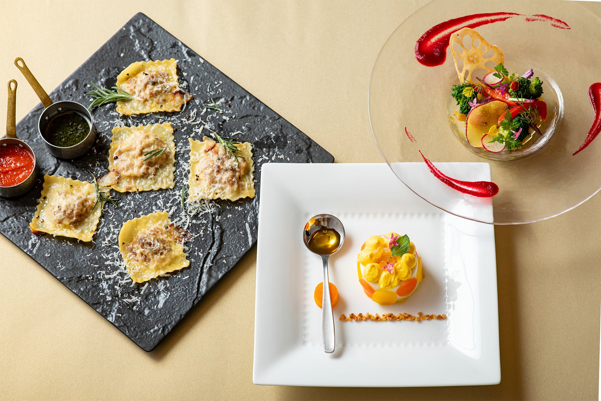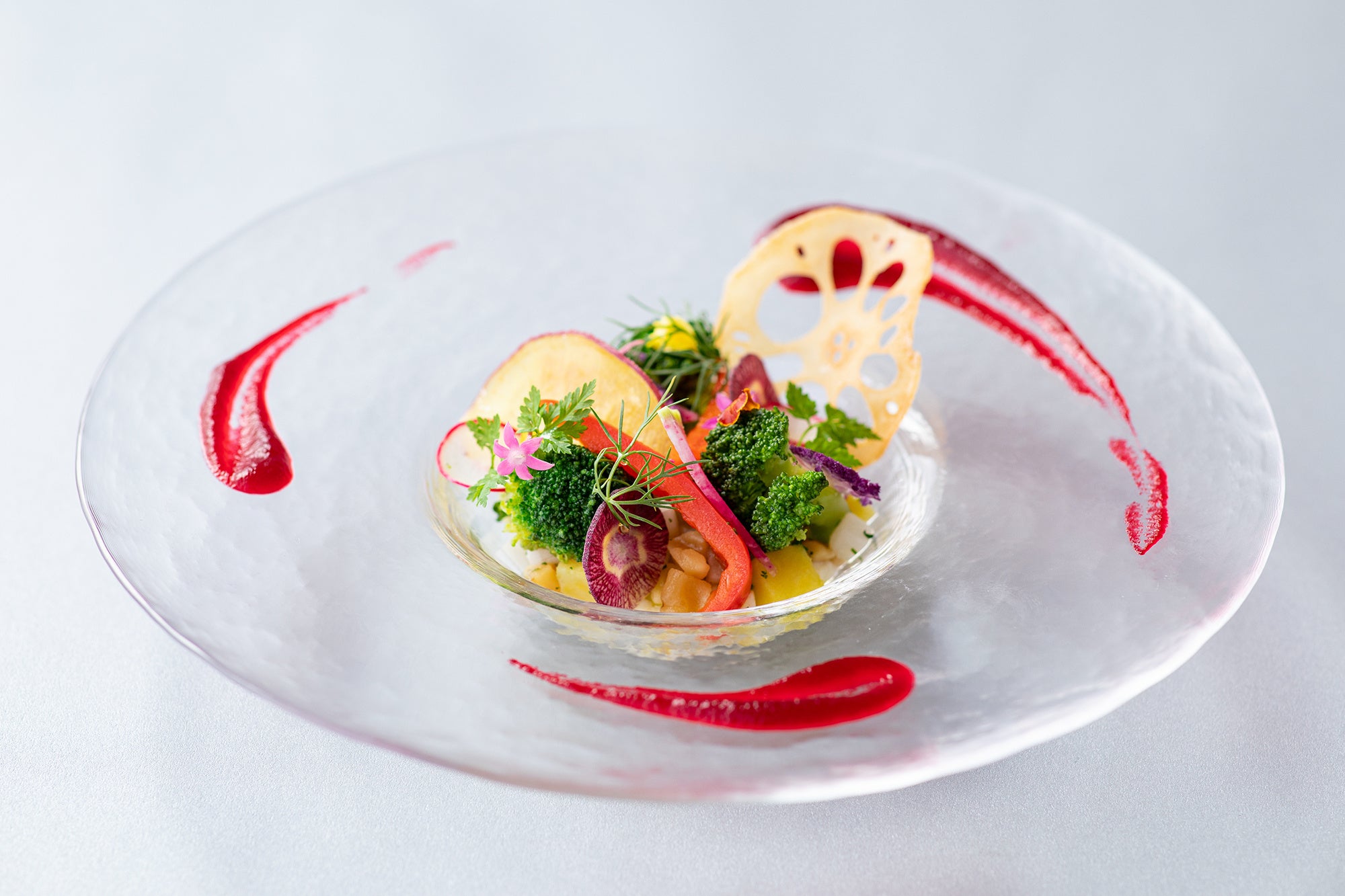 ベジタリアン部門、デザート部門で優秀賞を受賞したメニューは、野菜だけで構成されたディナーコース「東京野菜が主役のベジフルコース」でもお楽しみいただけます。