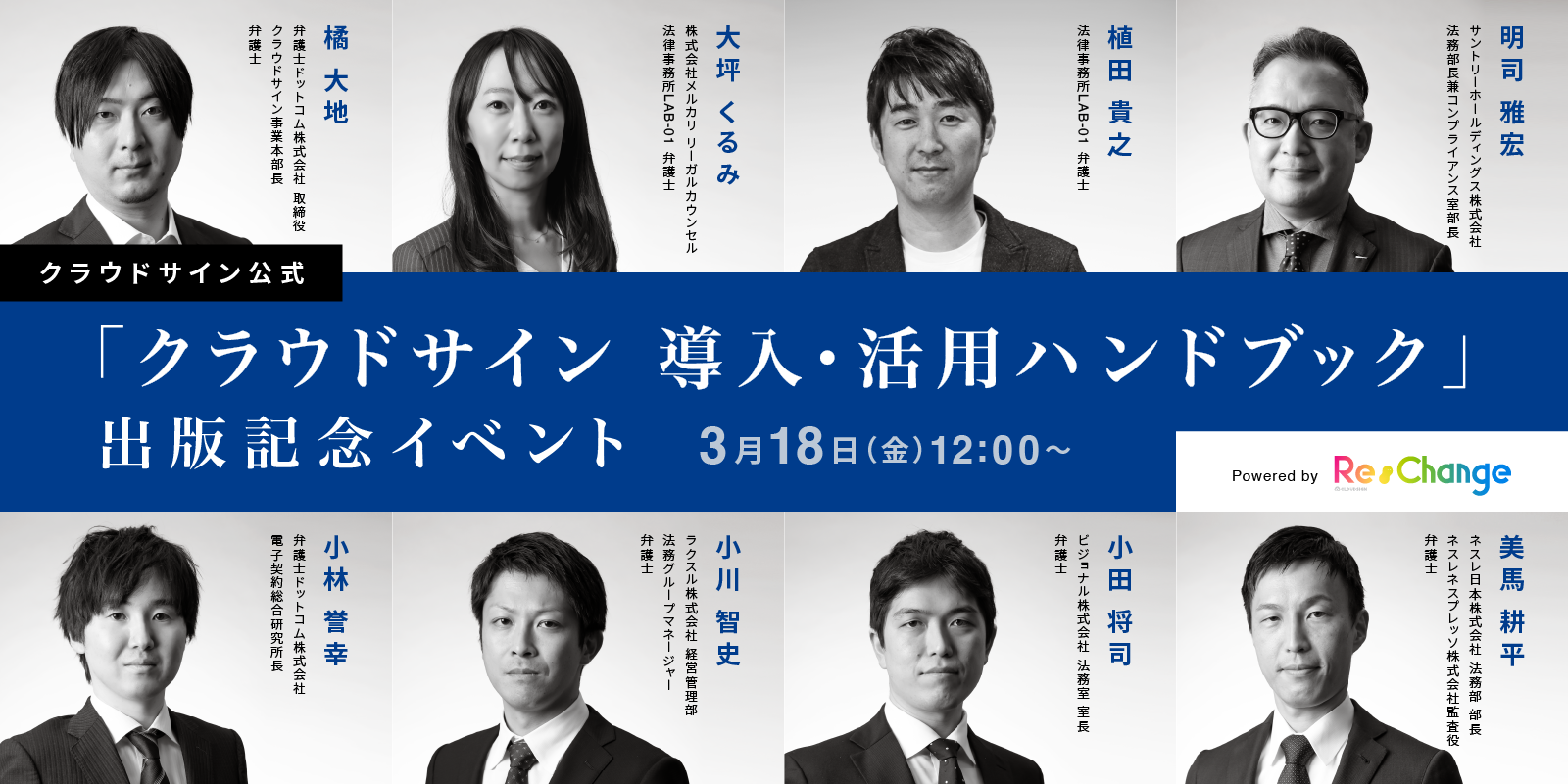 クラウドサインでは、契約業務における様々な課題解決策やクラウドサインの活用方法を共有する場として「Re:Change」を運営しており、本書籍ではコミュニティを超えた多くの皆様に、電子契約をスムーズに導入・活用いただくための実践的な情報をお届けします。