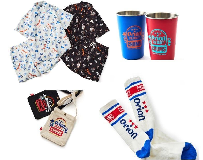 オリオンビールでは、「アウトドアシーンで大勢の仲間達と楽しい時間を過ごして欲しい。そして、豊かな自然を楽しみ、大切に思う共感の輪を広げたい。」という思いから、人気アウトドアカジュアルブランドの「CHUMS(チャムス)」とのコラボアイテムを2021年から発売しています。今年も春夏のレジャーシーンをさらに盛り上げる新作アイテムを計9点発売します。毎年大人気のコラボTシャツやアロハ風シャツに加えて今年は新しく、シャツとセットアップで着用できる新作のショーツや、ソックスなどもラインナップに加わりました。