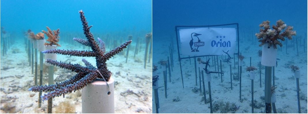 本商品は売上の一部(1%)を、NPO法人アクアプラネットが取り組む沖縄の美ら海を守っていくためのサンゴ保全活動に寄付します。アウトドアでの楽しみ方の提案とともに、沖縄の大切な自然環境の保全にも貢献していきます。(画像提供:NPO法人 アクアプラネット)