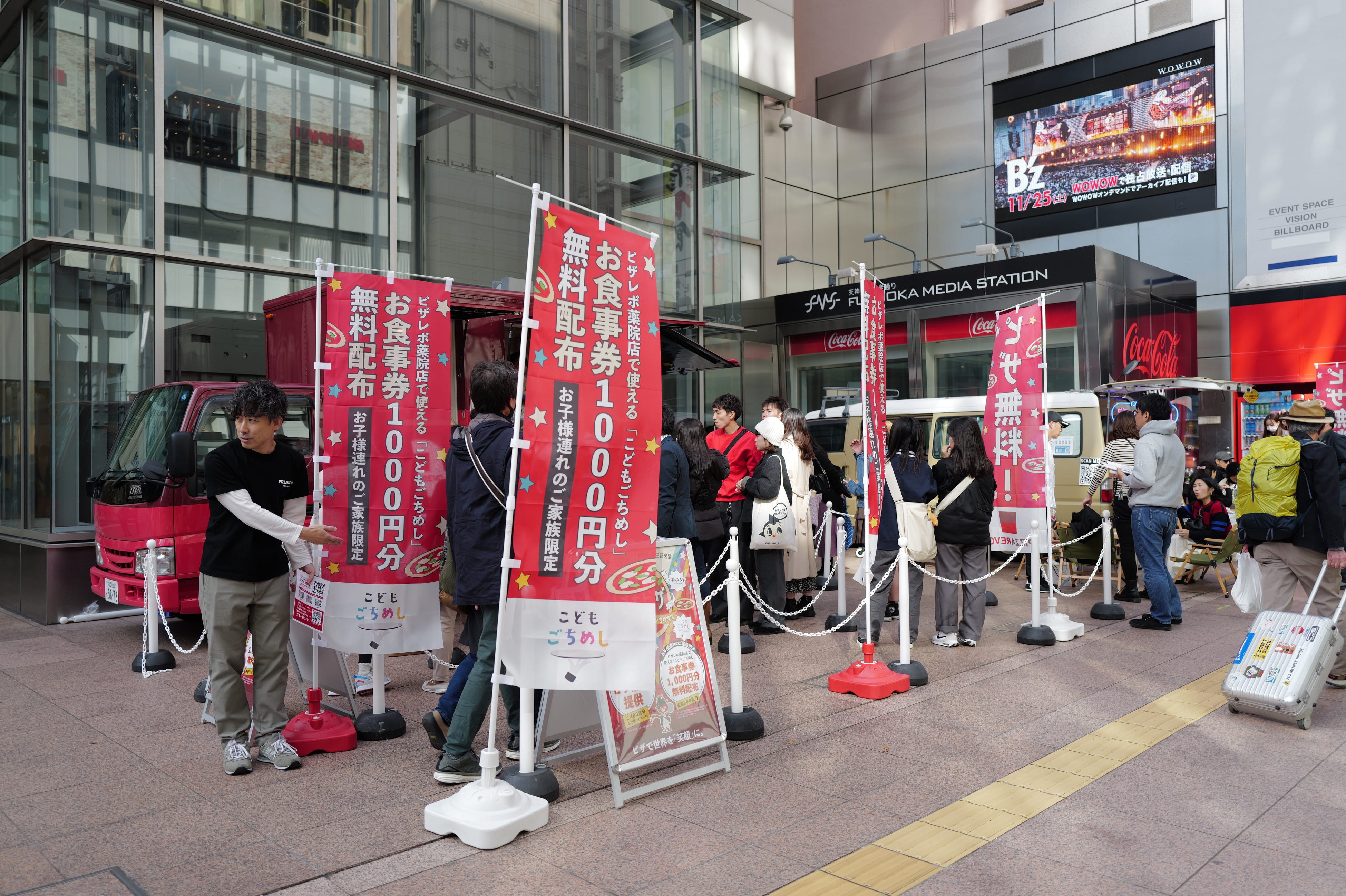 【イベントレポート】「ピザレボのピザ」を福岡天神で無料配布!11月19日(日)岩田屋福岡本館前にてキャンプ女子株式会社×ピザレボ×こどもごちめし、トリプルコラボイベントを実施しました。