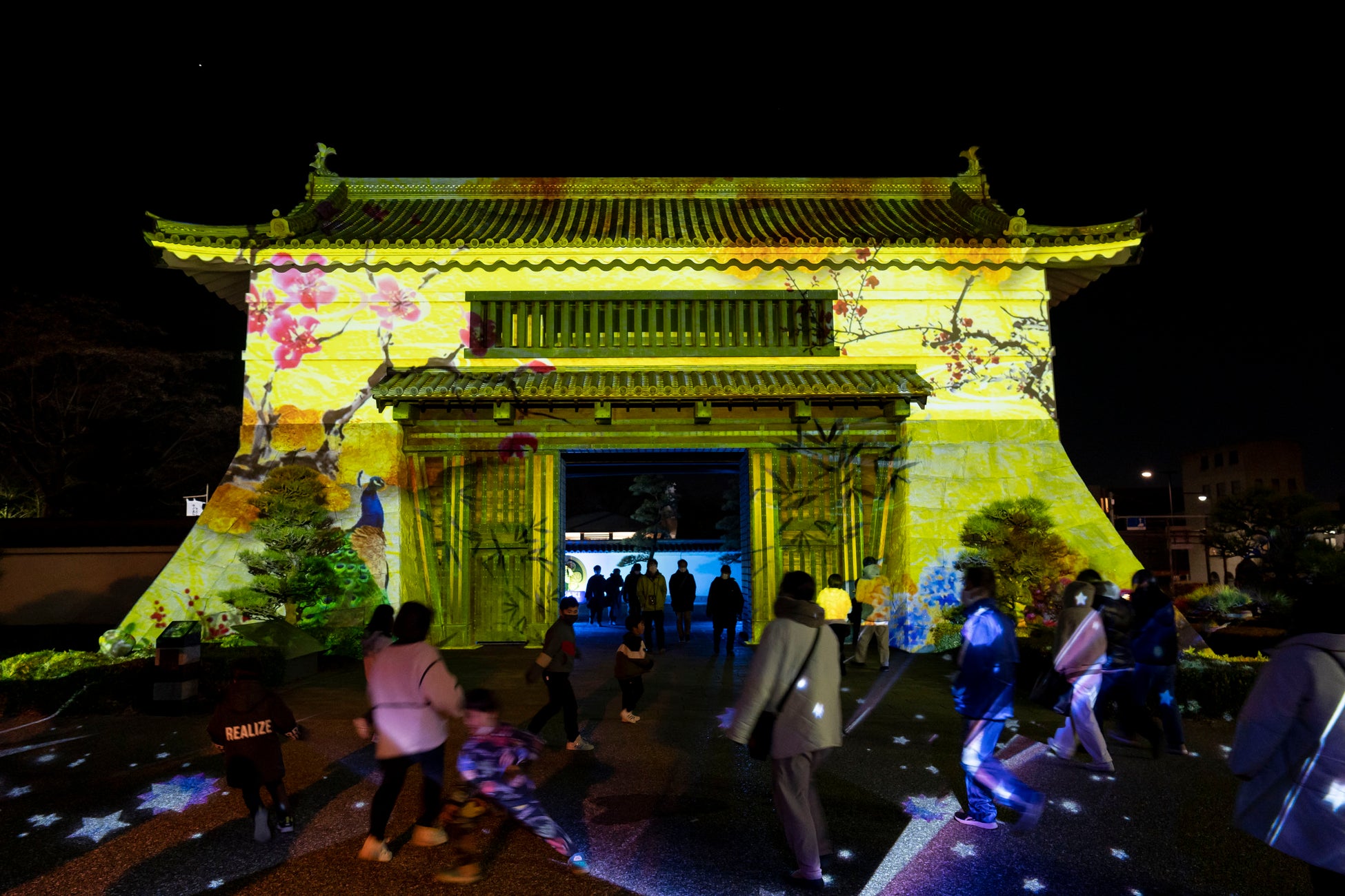 また、岡崎公園の表玄関で幅16.4メートル・高さ11メートルの岡崎公園大手門にもプロジェクションマッピング映像を投影します。