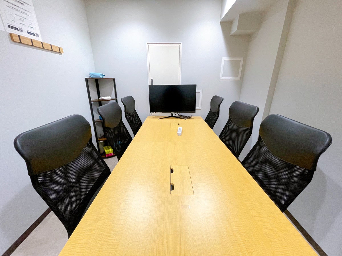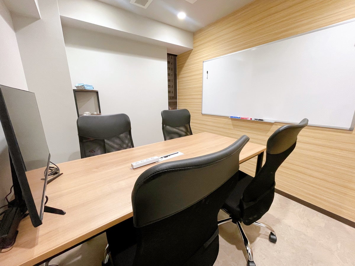 室内には、32インチの大型4Kモニターとホワイトボードが全室完備。重要な商談から社内ミーティング、資料作成の打ち合わせや企画会議、面接まで、さまざまな用途でご利用いただけます。