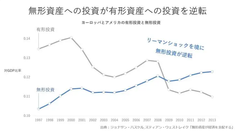 日本では、長らく不動産などの有形資産に対する投資ばかりが評価されてきました。しかし、世界に目を向けると、10年以上も前に有形資産と無形資産の重要性は逆転しているのです。