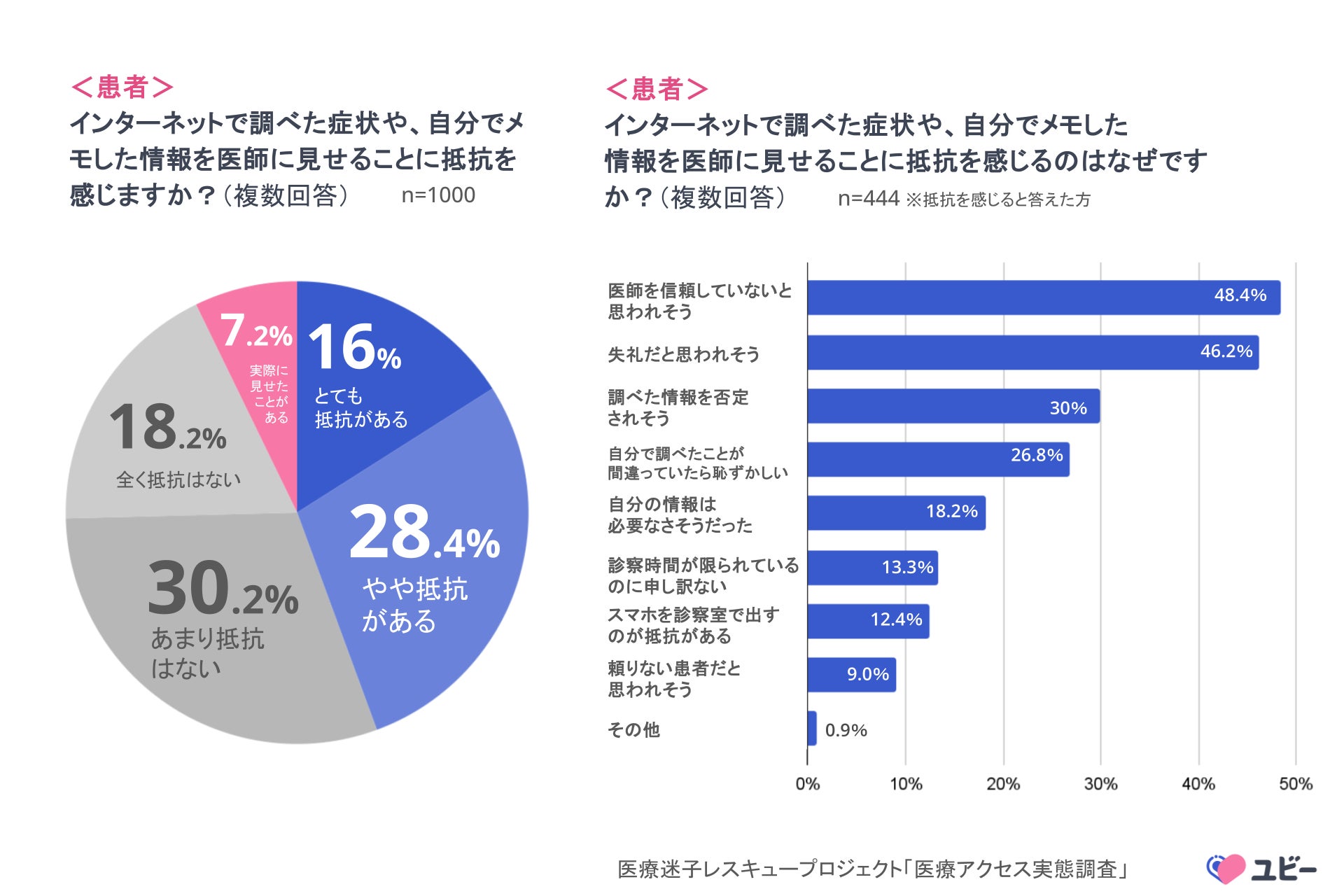 患者は準備した情報を見せることに4割以上(44%)が抵抗感。「医師のことを信頼していないと思われそう」と遠慮