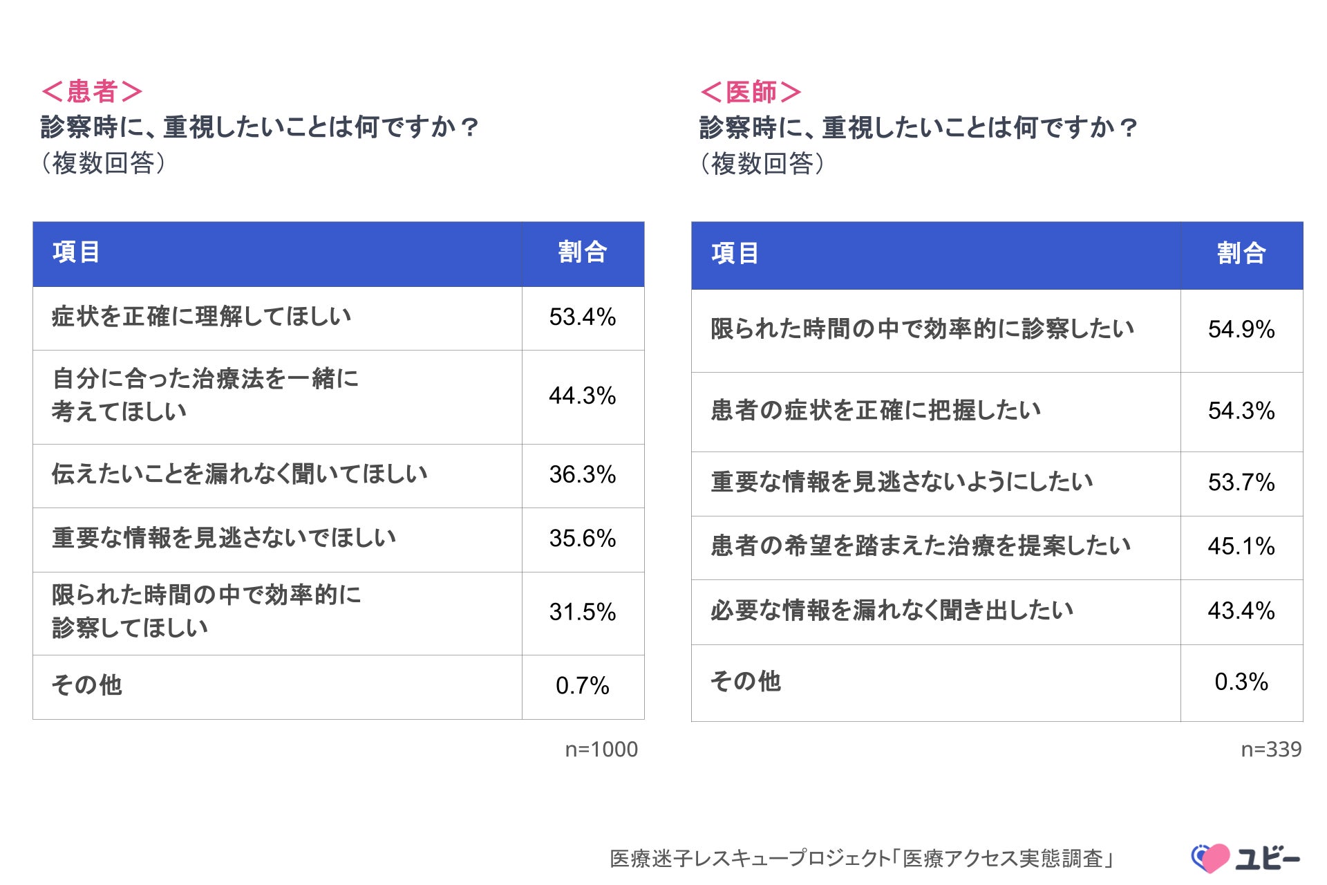 患者は「わかってほしい(共感)」、医師は「見逃したくない(効率・正確性)」と重視するポイントのすれ違い