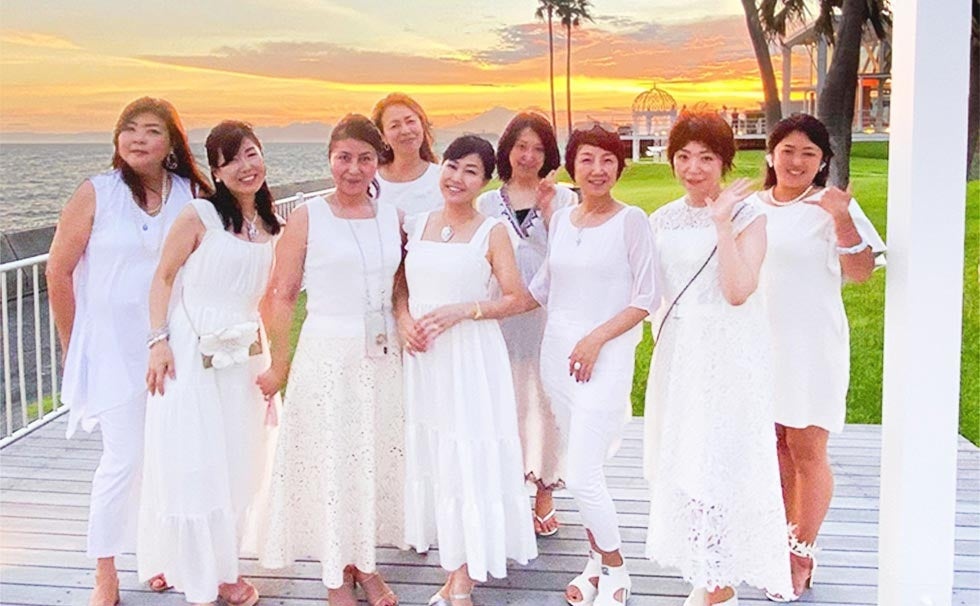 ドレスコードを白で統一したフランス発祥の世界一美しいと称されるパーティー。夕刻のサンセットから時間の移ろいと共に、プールサイドに幻想的な白い世界が出現します。