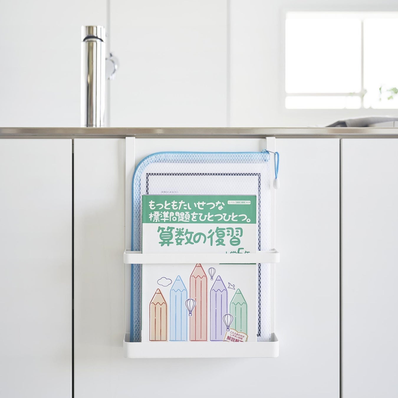 宿題等、よく手に取る物をキャビネットの扉に引っ掛けてスッキリ収納!