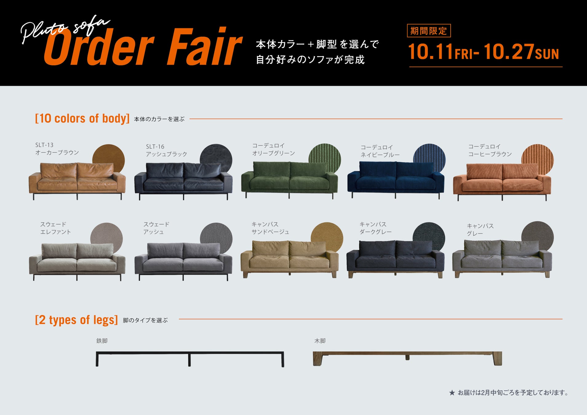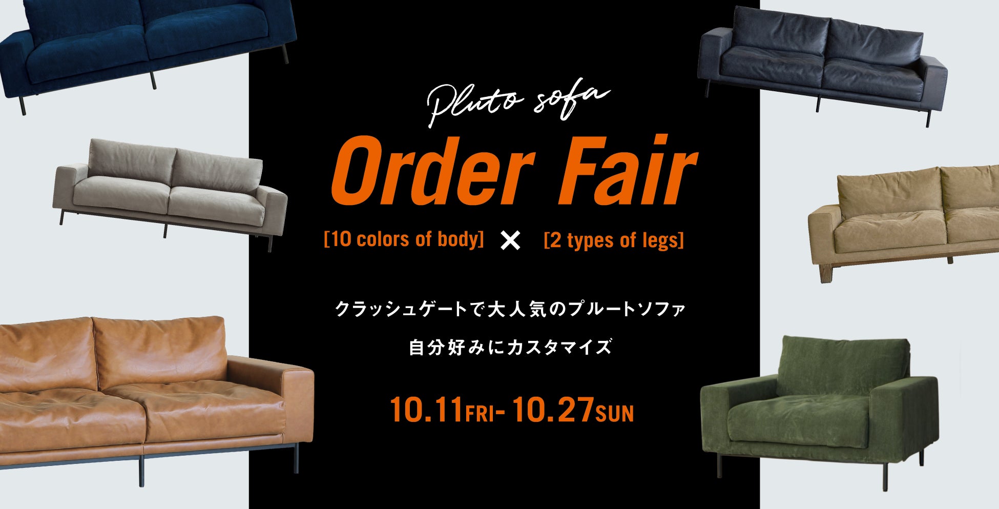 10月11日(金)~10月27日(日)までの期間限定。クラッシュゲートで1番人気のソファ「プルート」を自分好みにカスタマイズできるオーダーフェア!