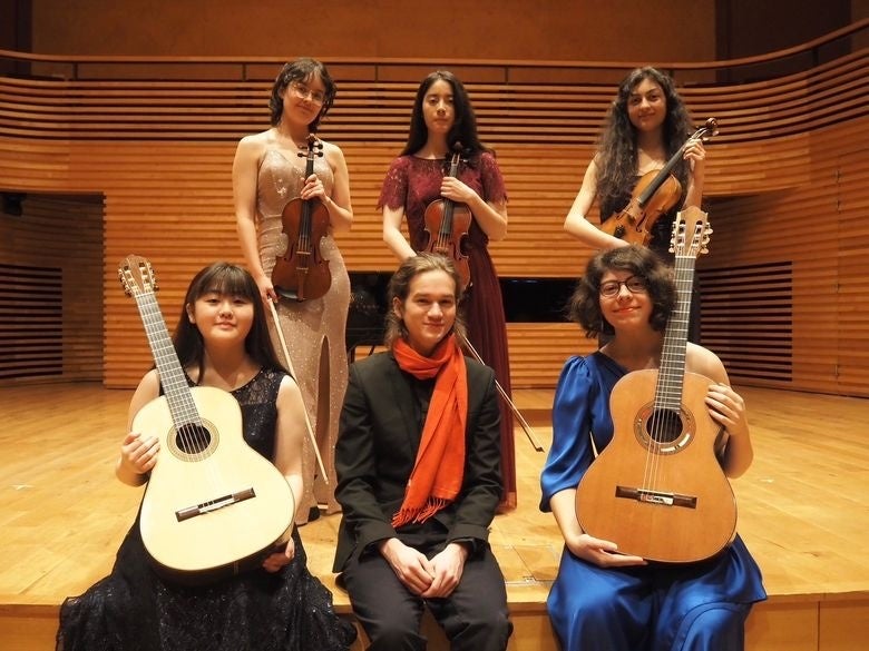 YMSは、ギタリストの尾崎琴音さんの他、イギリス、ベルギー、トルコ、ジョージア出身の15歳~19歳のヴァイオリニスト、ギタリスト、ピアニスト兼作曲編曲家が来日します。