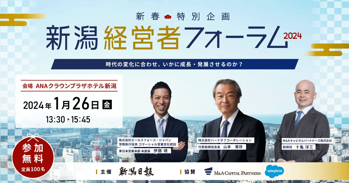 主催:新潟日報 協賛:M&Aキャピタルパートナーズ株式会社 株式会社セールスフォース・ジャパン |