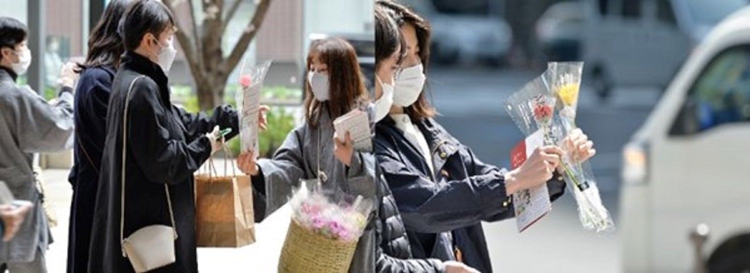 ①花の無料配布〈エールフラワー〉(制作協力:株式会社花門フラワーゲート)