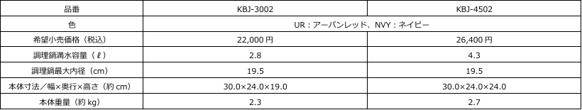 『サーモス 真空保温調理器シャトルシェフ(KBJ-3002/4502)』 仕様一覧