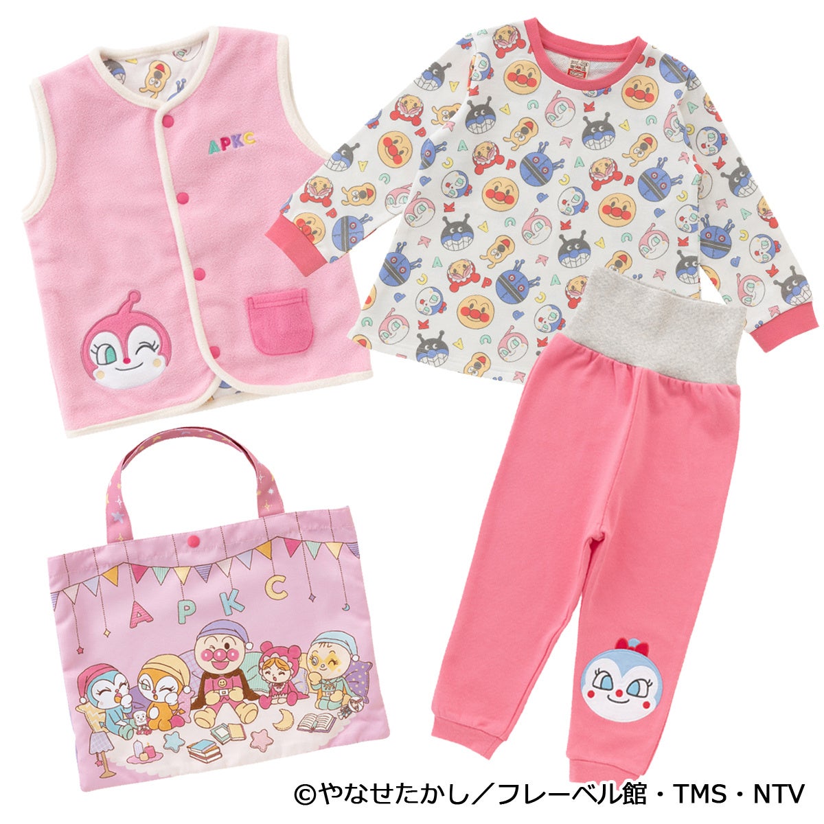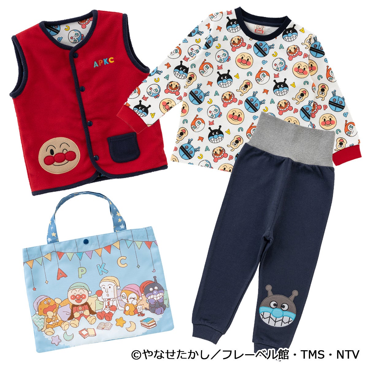 アンパンマンのおやすみセットが今年も登場!長袖パジャマ上下とフリースベストとバッグ付き