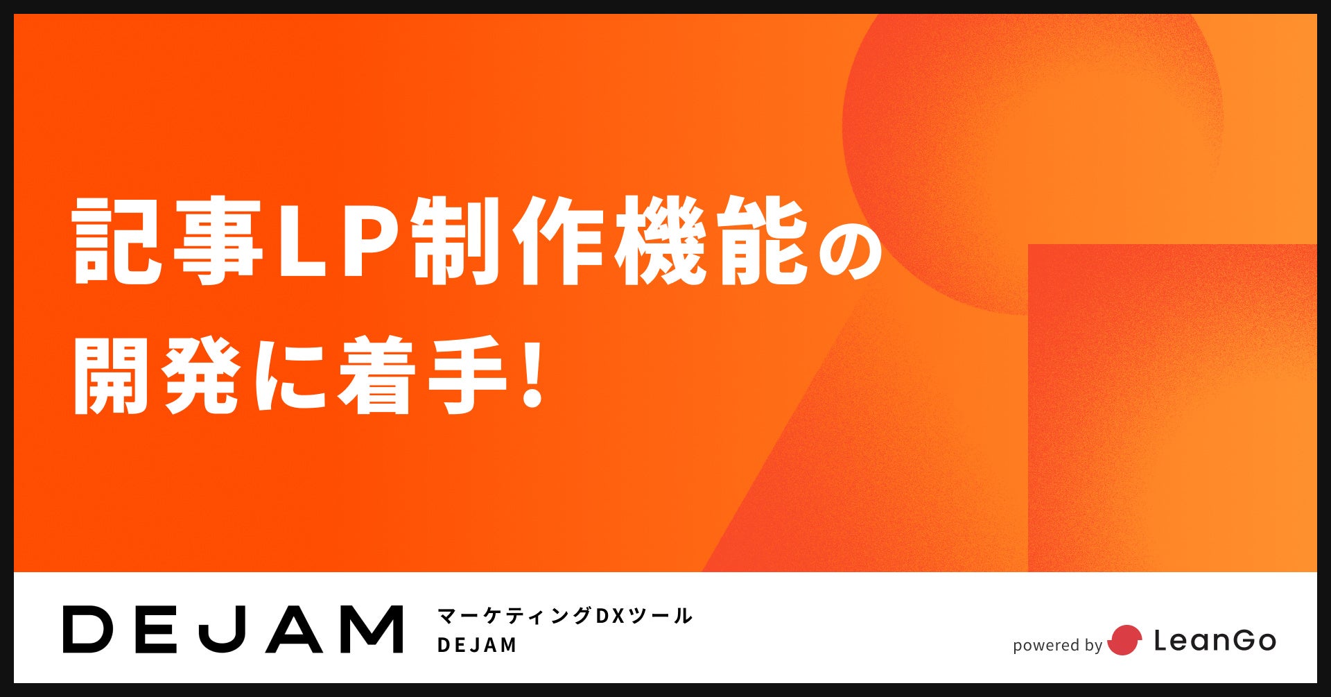 株式会社LeanGo (本社:東京都目黒区、代表取締役:平井 翔吏、以下 弊社) は、自社の運営するマーケティングDXツール「DEJAM( https://leango.co.jp/dejam/ )」で記事LP制作機能の開発に着手したことをお知らせいたします。