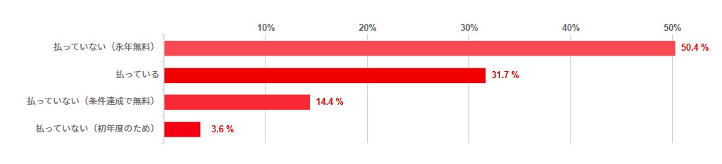 年会費が永年無料のクレジットカードを使っている学生が50.4%で最も多かったが、「払っている」との回答も31.7%で2番目に多かった。