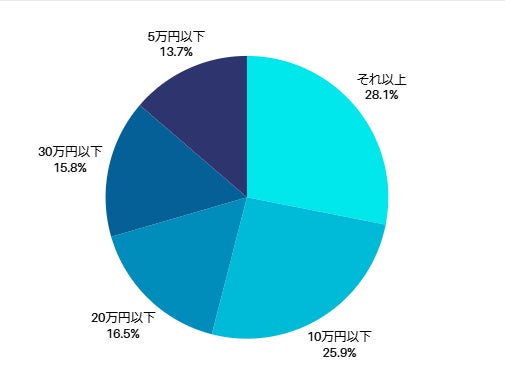 学生のクレジットカードの限度額は30万円以上が最も多く、5万円超10万円以下が25.9%でこれに続いた。