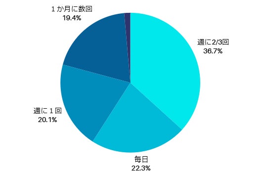 学生のクレジットカードの利用頻度としては週に2・3回が36.7%で最も多かった。また、毎日利用している人も22.3%いた。